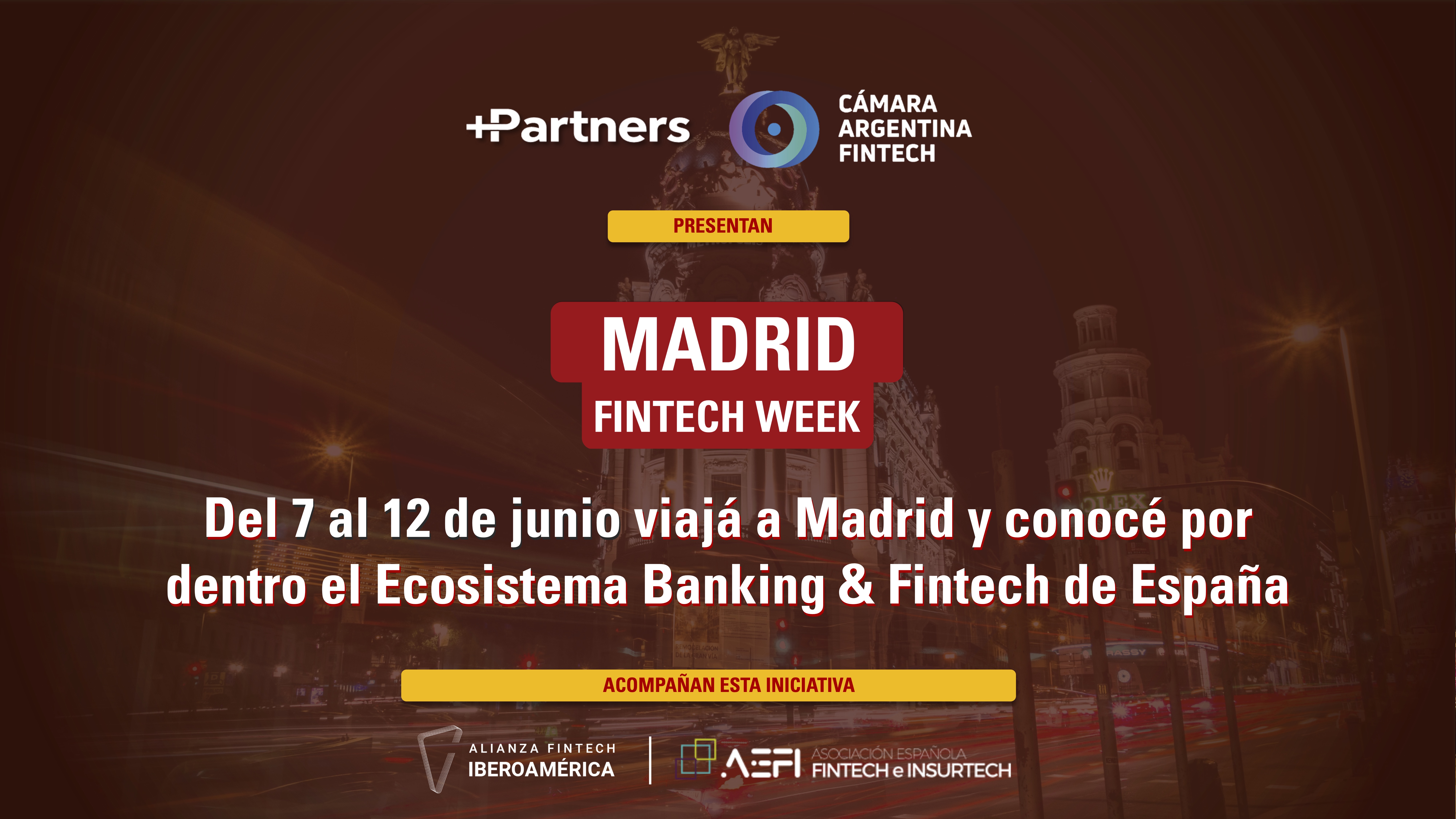 La Cámara Argentina Fintech, junto a +Partners, organiza una misión comercial a España con el objetivo de conocer en profundidad el ecosistema Banking & Fintech español y explorar oportunidades de expansión en el mercado europeo.
